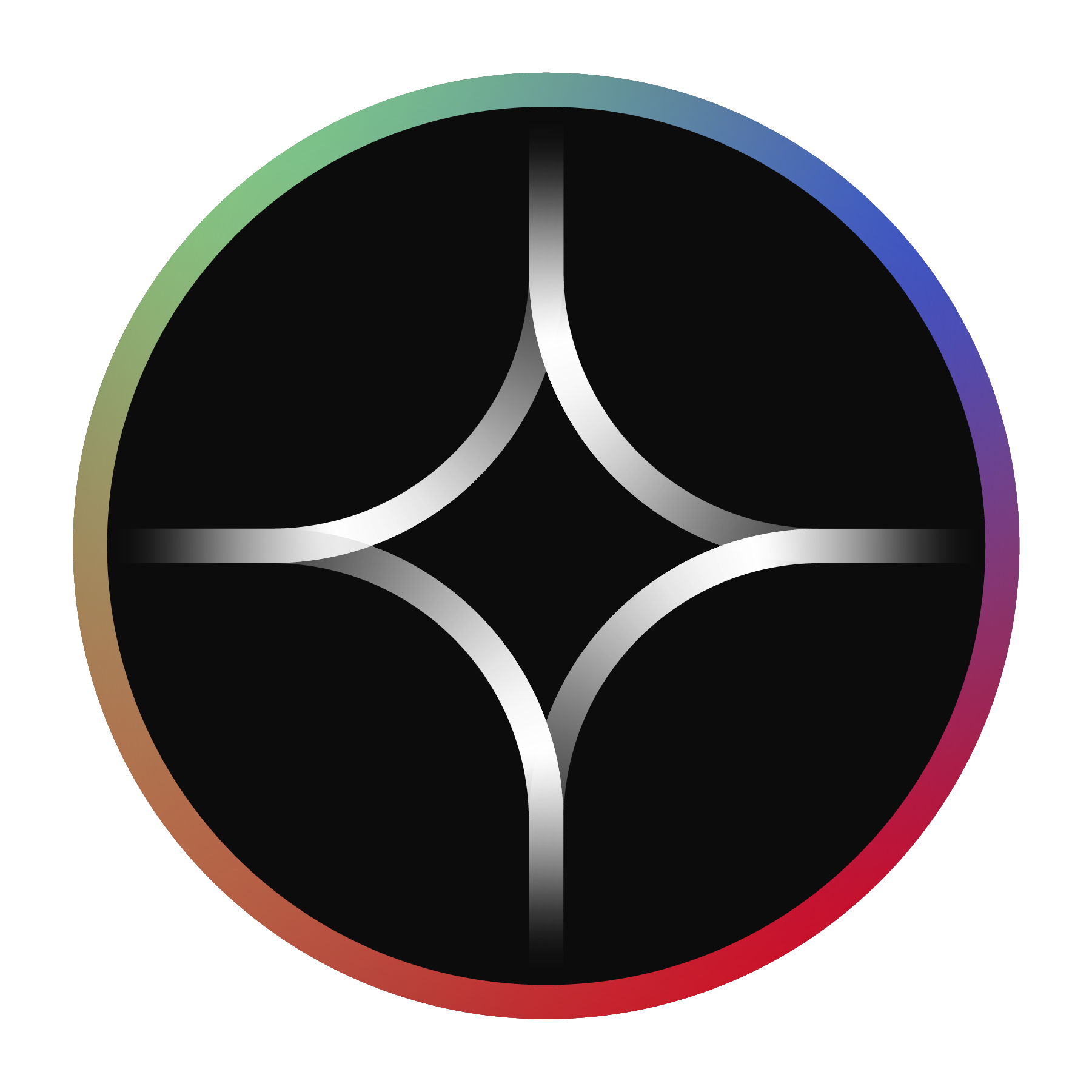Utilize a estrela de quatro pontas preenchida e conecte-as com linhas finas em degradê fade out para formar o pattern da Starian. Aplique-o sobre fundos claros ou escuros, utilizando sobretons da paleta sóbria.