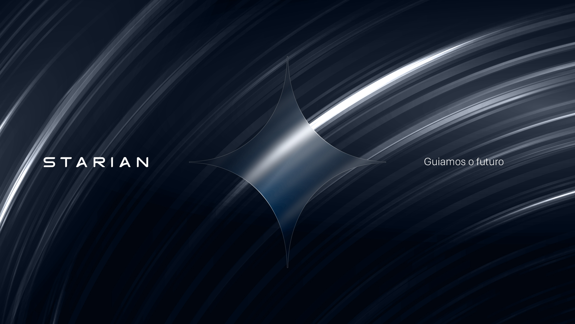 A marca gráfica da Starian é composta pela logotipia exclusiva em caixa alta que segue a forma proprietária de identidade com cantos levemente arredondados. O diferencial das letras A gera movimento e fluidez ao nome. A marca é sóbria e aplicada sempre de forma monocromática.