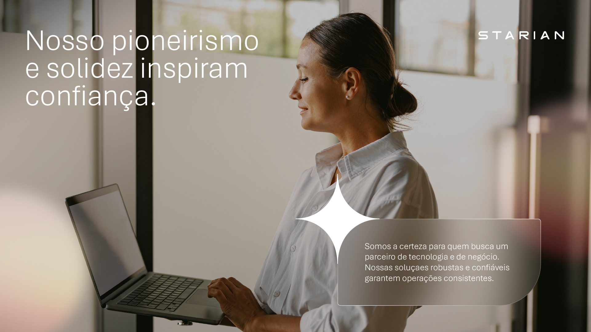 Seguindo as formas da logotipia e marcas de produtos Starian, explore boxes, backgrounds e recortes de imagagens com a forma proprietária da marca: retângulos com dois cantos arredondados e dois cantos retos.